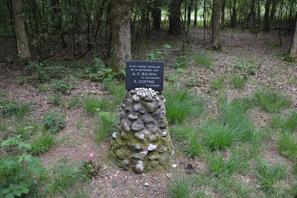 In dit verzetstrijdersbos is een oorlogsmonument aanwezig dat is opgericht ter nagedachtenis aan Albert Bijlsma en Roel Oosting, twee verzetsmannen die hier op 18 september 1944 door de bezetter zijn gefusilleerd. Het gedenkteken is bereikbaar via het Schoolpad (zandpad), rechts van de ingang van de golfbaan.